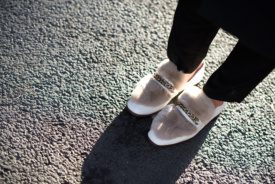 Pants: Baum und Pferdgarten/ Youheshe.com Fur: Birgitte Herskind. Leaves Ring: Ole Lynggaard Sneakers: Stan Smith Photo: Polaris-journal.com