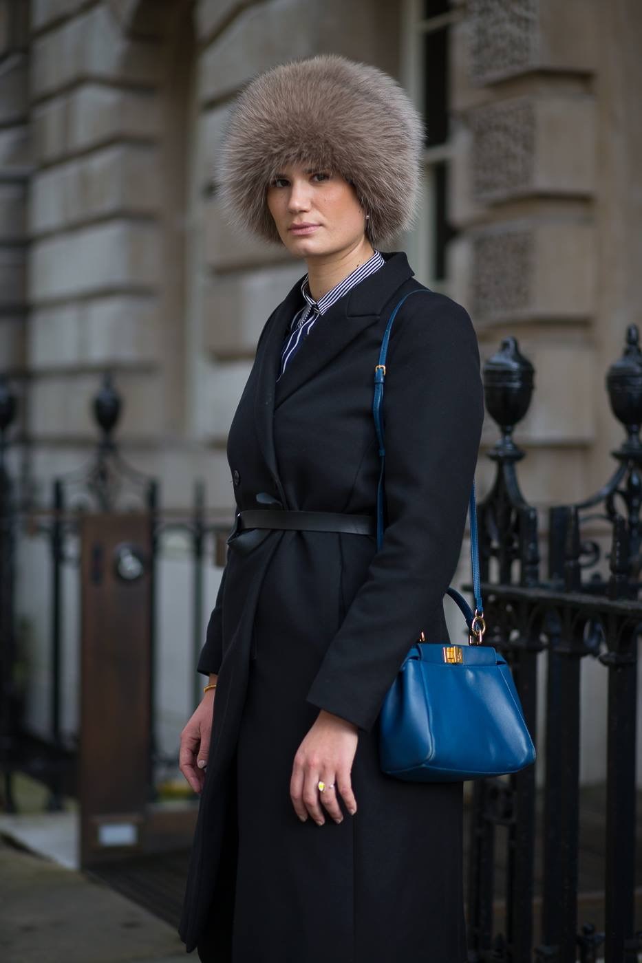 When in London dress like the royalties: Coat & trousers: Whyred, shirt: Zara, sneakers: Stan Smith, bag: Fendi, hat: Kopenhagen Fur.