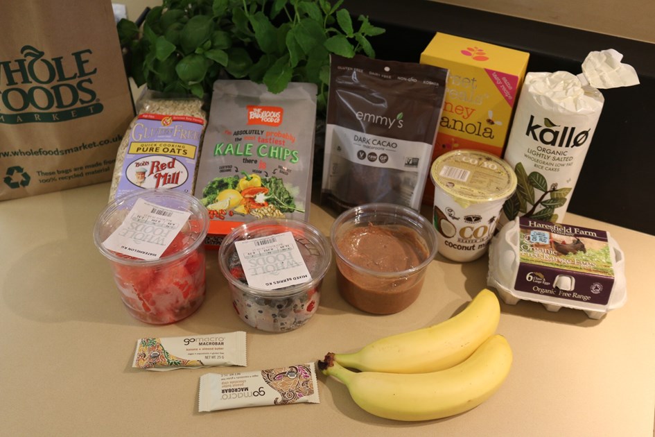 WHOLEFOODS takes all my money! But I love good quality food, and i'm always trying to buy healthy and organic groceries! This is what I bought today: Gluten free bars, bananas, watermelon + berries, eggs, coconut yoghurt, rice cakes, hazelnut-butter, granola, kale chips, gluten free oats, raw chocolate maccarons, fresh basil and mint.