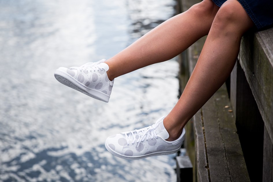 Boost your weekend line-up with this reflective dot-print version of Adidas Originals iconic 'Stan Smith' sneakers. This dandy pair is constructed in the classic low-top silhouette from slick white leather.