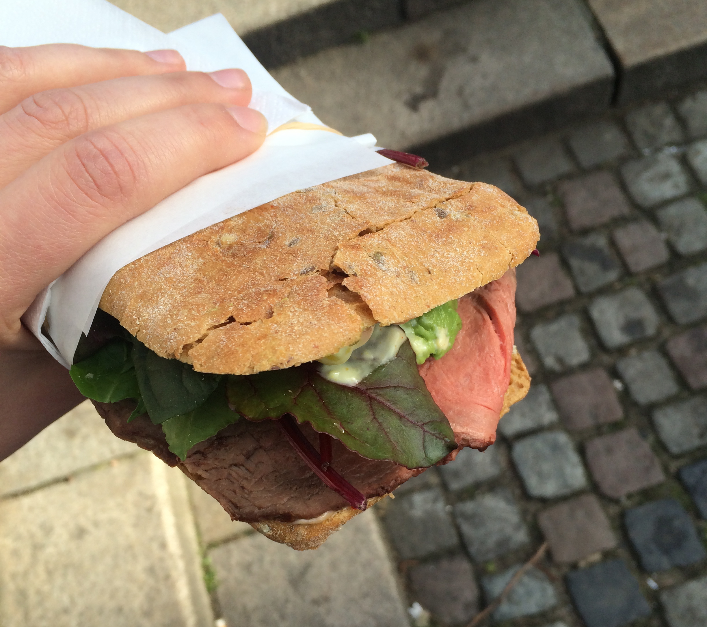 The shop is most famous for its salads! It’s probably the best in town. However we also have a great selection of sandwiches: salmon, tuna, ham + cheese and the most popular among the danish guys: The beef sandwich with chili creme and pickles.