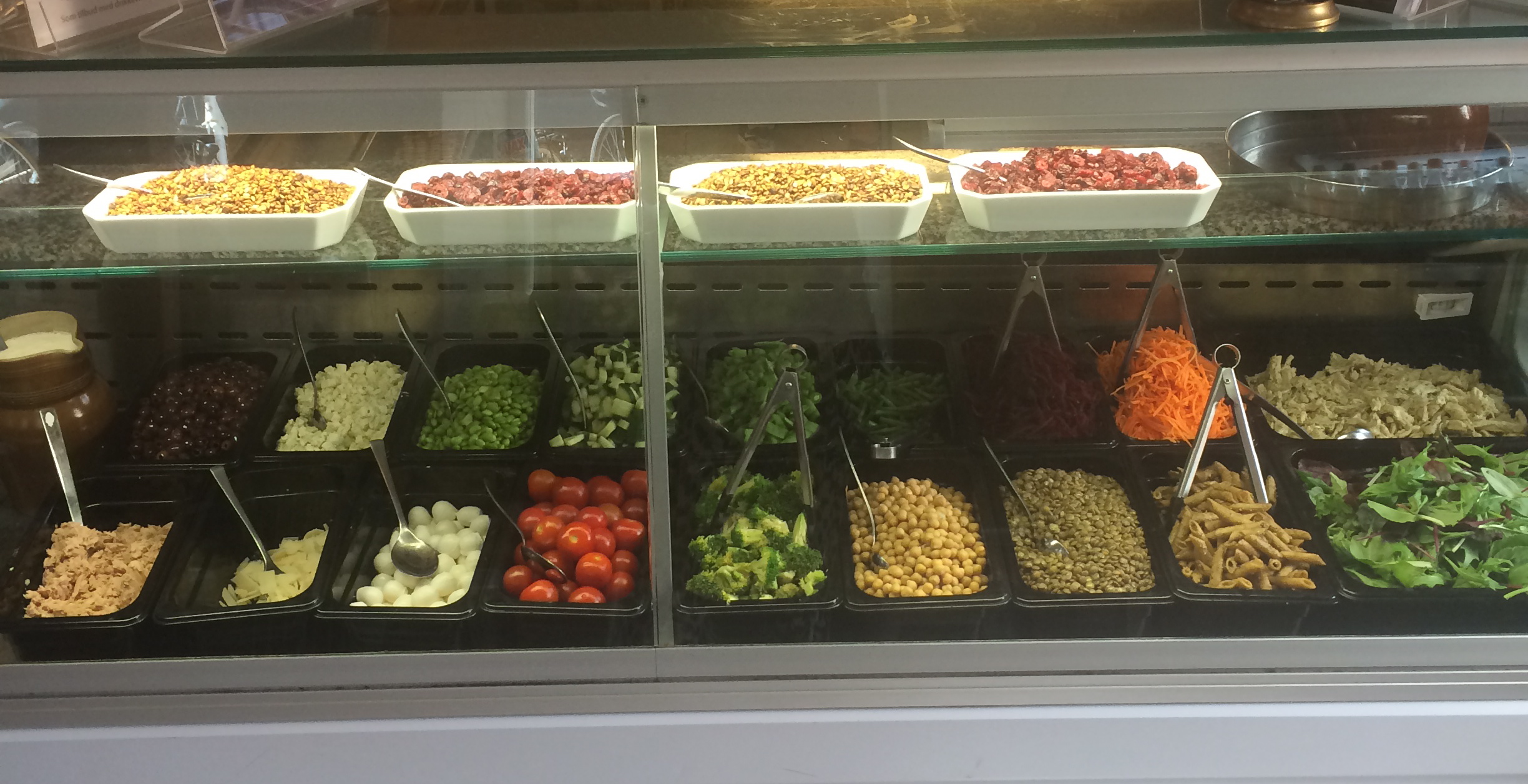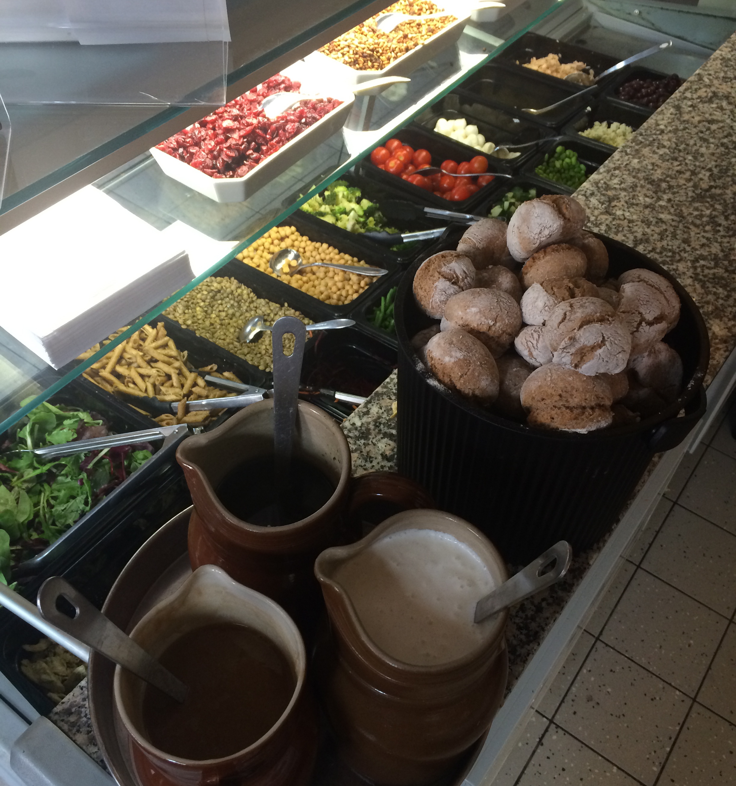 U can customize the salad as u like. Everything is fresh plus the bread and dressings are homemade. Sometimes the line is 20 min. but the danes wait happily in line for their healthy lunch.