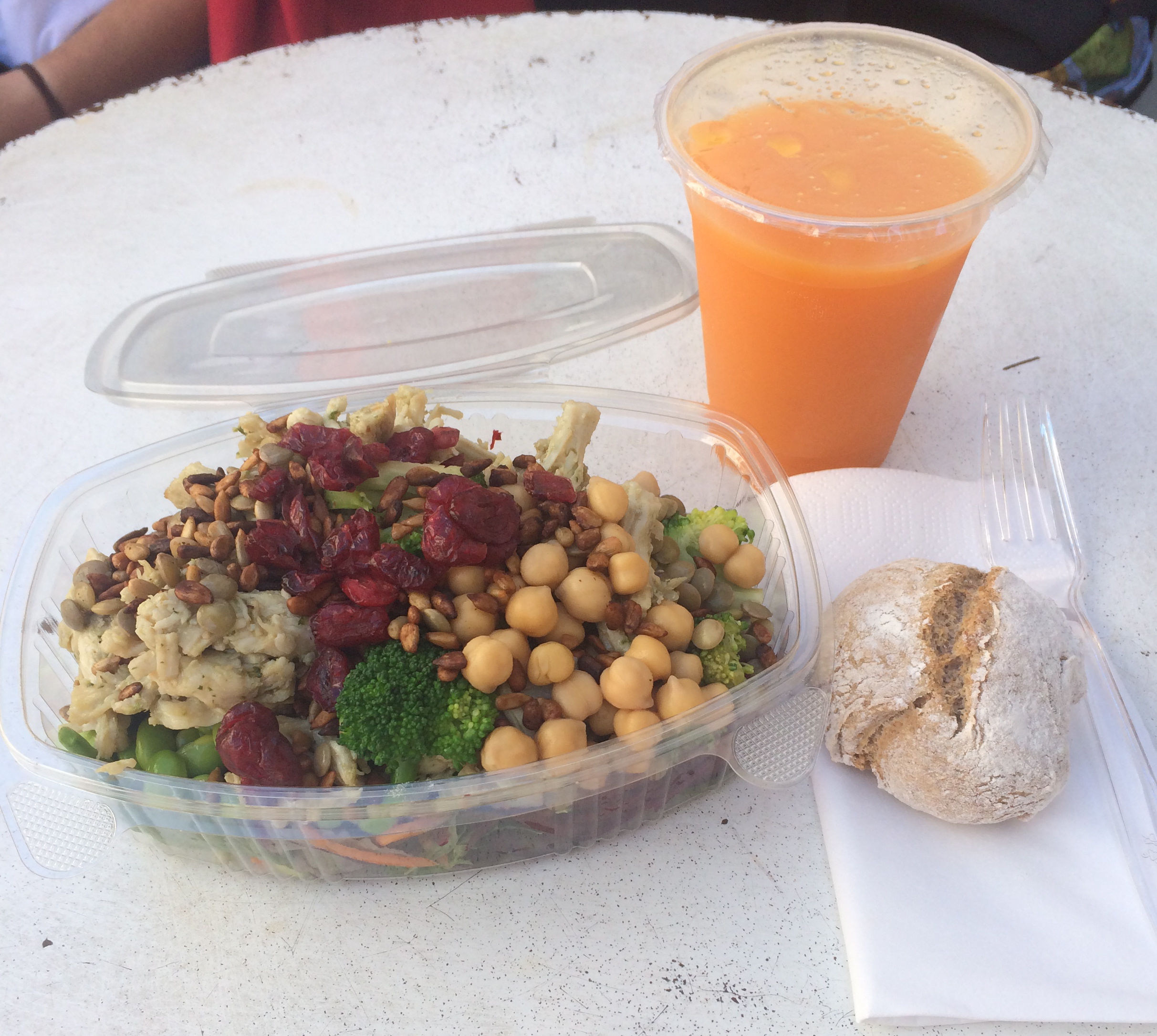 Fredco’s have a special offer where u get a fresh mixed juice (ginger, orange, apple, pineapple) or raspberry smoothie + sandwich or salad for 70 dkk.